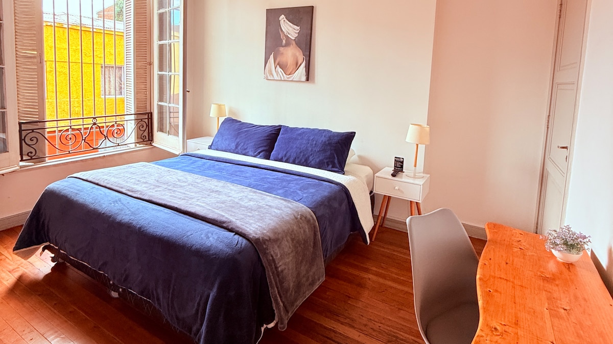 Kamra komda b' sodda mimlija u kamra tal-banju privata. Tliet blokok 'il bogħod mill-Metro Normali ta' Quinta, 7 minuti' l bogħod mill-Plaza de Armas f' Santiago, hija din id-dar mill-1950, kompletament restawrata, komda u familjari. Minn fejn tista 'tibda tesplora ċ-ċirkwit kulturali, tal-wirt u gastronomiku tal-Brażil u tal-Viċinati ta' Yungay. Tinsab ukoll ftit passi 'l bogħod mill-Kafetterija u l-Furnara ta' San Camilo, il-Mużew tal-Memory and Human Rights u mill-Istazzjon Ċentrali.