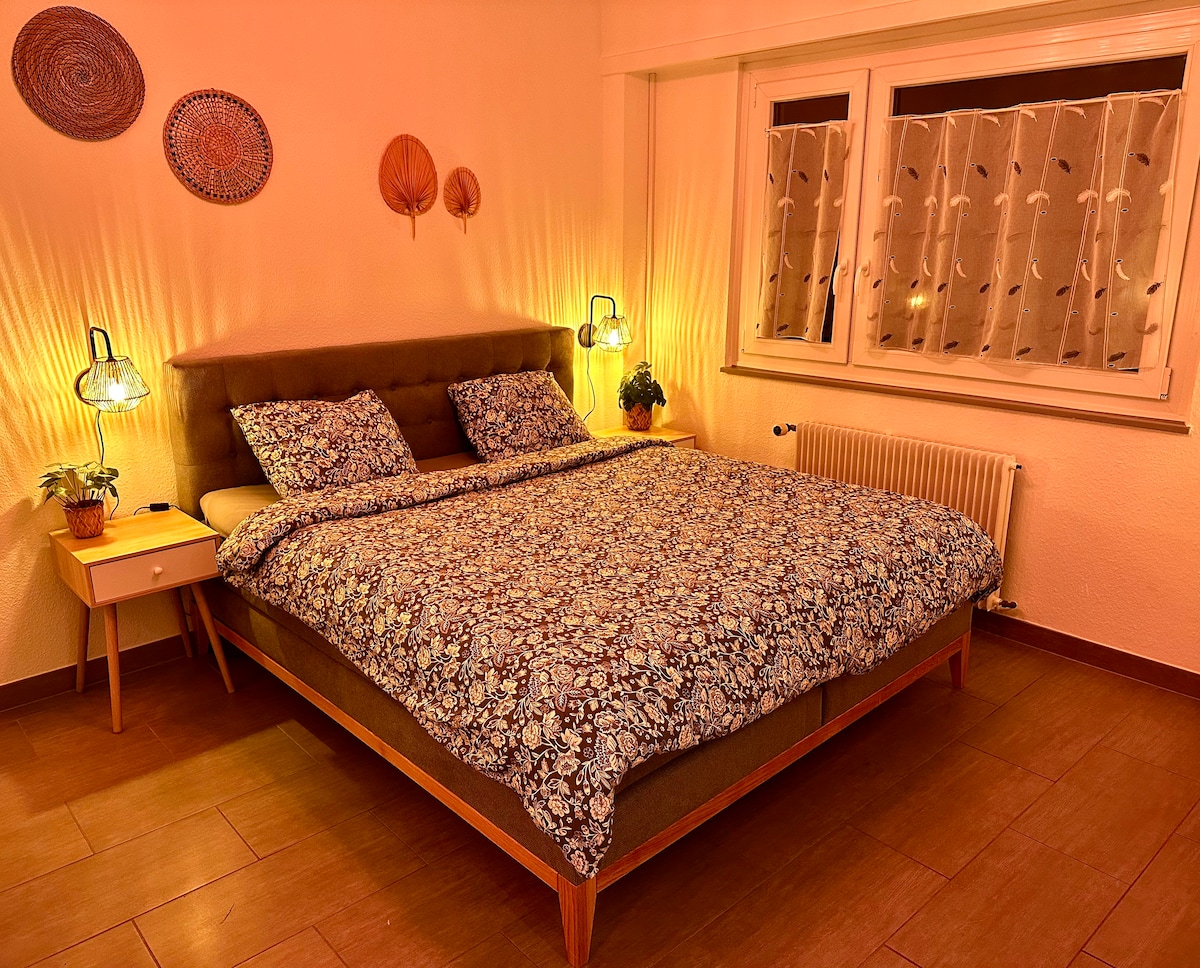 Aħna nħobbu l-Palatinate tan-Nofsinhar u nilqgħuk GĦAŻ-ŻJARA kwieta u komda tagħna GĦAL VAGANZA. L-appartament imfassal mill-ġdid tagħna li jħares lejn il-ġnien, ir-raħal u t-tarf tal-foresta huwa perfett għal pawża u jinsab idealment biex tesplora l-Palatinate tan-Nofsinhar u t-Tramuntana ta' Alsace. Għelieqi tad-dwieli, foresta, mogħdijiet għaċ-ċikliżmu u għall-mixjiet fit-tul kif ukoll il-mogħdijiet għar-roti fil-muntanji jinsabu fil-qrib. Aħna ngħixu fl-istess dar u ninsabu kuntenti li ngħaddu l-pariri.