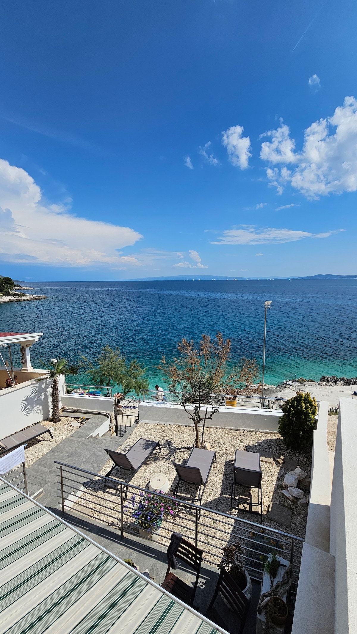 30 metru mill-baħar appartament kbir f 'dar privata li tħares lejn il-baħar b' parkeġġ privat,arja kkundizzjonata, wifi,terrazzin li jħares lejn il-baħar,barbikju, kċina mgħammra u l-kumditajiet kollha b' 2 ikmamar tas-sodda. Il-kmamar tas-sodda huma kif ġej: 1 b 'sodda doppja ta' 160 ċm 1 wieħed b 'sodda ta' 120 ċm Sufan wieħed sodda doppja x 2 persuni fis-salott. Qrib ħafna tal-ajruport u tas-suq, bars, ristoranti, bajjiet, kollha aċċessibbli fil-minuti bil-mixi. Il-familji huma adattati wkoll.