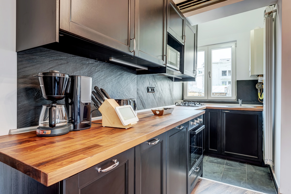 Stay in a stylish modern-retro apartment in the heart of Bucharest Old Town, just across the National Bank — one of the most central and safest locations in the city. Tucked away towards an inner courtyard, the apartment offers a calm and comfortable retreat, with fast WiFi and everything you need for a smooth and enjoyable stay. Thoughtful extras such as board games and family-friendly touches are also available to make the space feel even more welcoming.