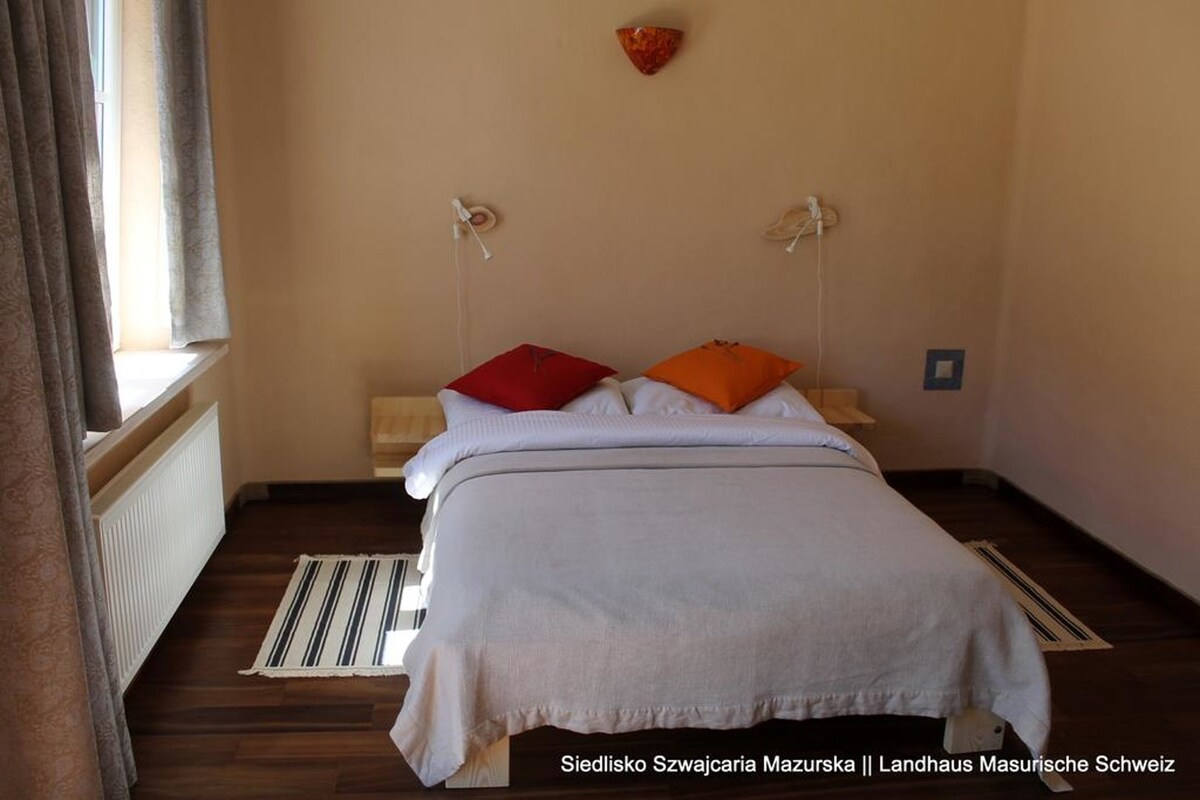 Dar fir-raħal ta' Jaśki, f' Masuria, 300 metru 'l bogħod mil-lag. Hija kwieta u paċifika, u fl-istess ħin tinsab qrib, 5 minuti mixi 'l bogħod mill-bajja pubblika u 5 km' il bogħod miċ-ċentru ta' Olecko. Madwar ġnien kbir, il-propjetà għandha xmara, ġnien tal-ħxejjex organiċi, ġnien tal-frott , fossa tan-nar, grill, kantina qadima, gazebos, park tal-logħob. Appartament b' daħla separata, terrazzin, komdu, xemxi, b' kamra tal-banju privata, doċċa, sink , televixin, wifi tajjeb ħafna u kċina żgħira , mingħajr sink tal-kċina.