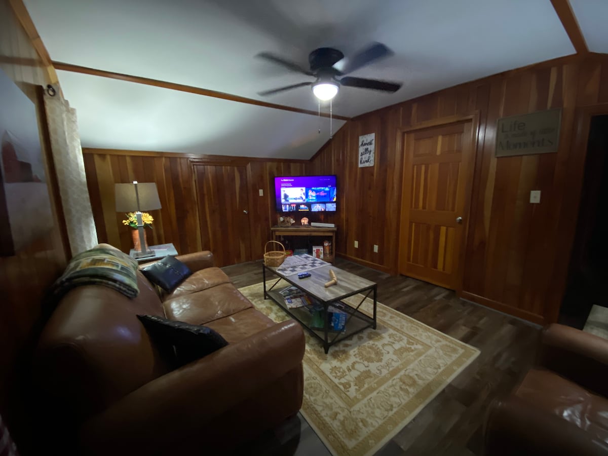 Agħmel xi memorji f 'din il-kabina rustika mibnija bl-idejn. Din il-kabina nbniet bl-użu ta 'zkuk tal-arżnu reklamati minn barns tat-tabakk lokali. Iż-żewġ kmamar tas-sodda jinsabu f' LOFT MIFTUĦ fuq is-sular. Il-purtieri tal-privatezza huma installati iżda ma jimblukkawx l-istorbju Il-kabina hija mimlija kumditajiet fosthom magna tal-ħasil/dryer, hot tub, banju antik clawfoot b' doċċa, kċina sħiħa, banju tal-jacuzzi, veranda kbira fuq wara, żona tal-logħob b' mejda tal-foosball, u veduti sbieħ tal-ftit Brushy' s.