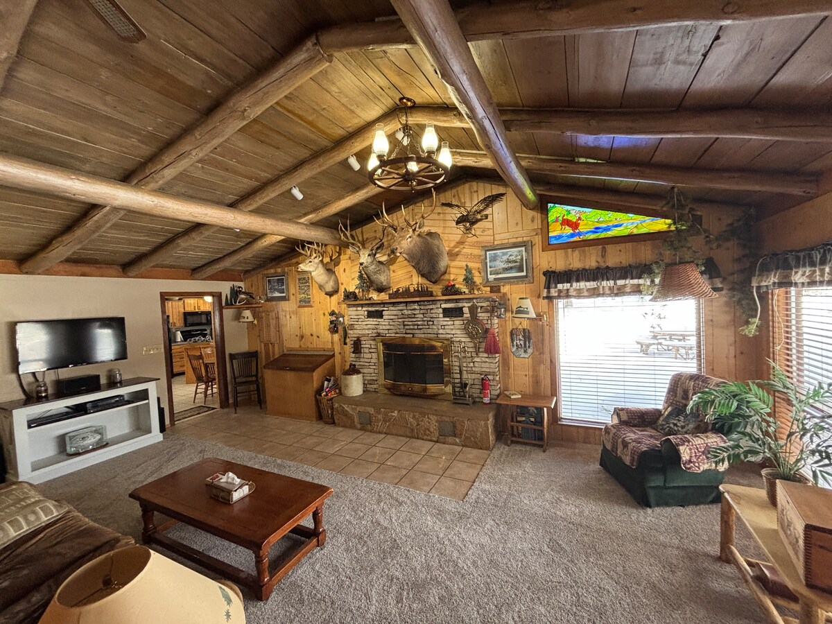 Chalet taz-zkuk sbieħ, imdawwar b' siġar tal-arżnu fuq ix-xmara pelikana. Il-kabina tagħna tinsab fit-tarf ta 'sewqan privat fejn l-uniċi ħsejjes huma dawk tax-xmara pelikana li qed tgħaġġel! Inkredibbilment paċifika u komda! Gawdi cocktail fuq il-baċir privat tagħna fuq in-naħa tax-xmara, marshmallows mixwi fil-fossa tan-nar, jew ilgħab logħob u aqbad film ġewwa! Kayak 'l isfel fix-xmara, sala fuq il-gverta, jew aqbad il-borża fil-bitħa ta' wara! Ħafna mogħdijiet ATV/UTV/Biking/hiking fi ftit mili