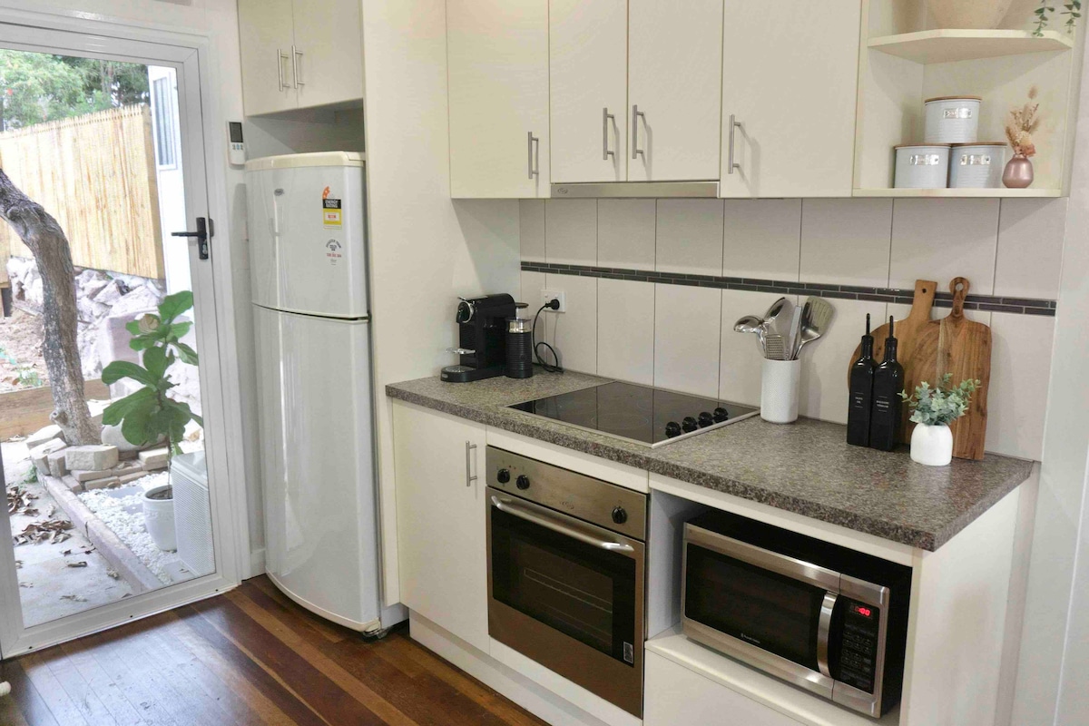 Stenna sakemm ix-xemx tifxek fuq il-pixxina u tisma' l-għasafar jkantaw f'dan l-appartament żgħir mimli dawl. Imtarra' qalb is-siġar tal-palm, l-ispazju jħossu mimli dawl, arja friska u privatezza komda - post tropikali fejn tistrieħ. Jinsab f'Railway Estate, post mimli siġar, u tinsab ftit passi 'l bogħod mill-Istadjum QCB u inqas minn 10 minuti bil-karozza 'l bogħod mill-belt u Strand. L-appartament sħiħ huwa tiegħek, b'aċċess privat, wifi, kċina mgħammra sew, żona tal-għajxien b'netflix, kamra tas-sodda queen u ensuite b'xaver tax-xita u magna tal-ħasil.