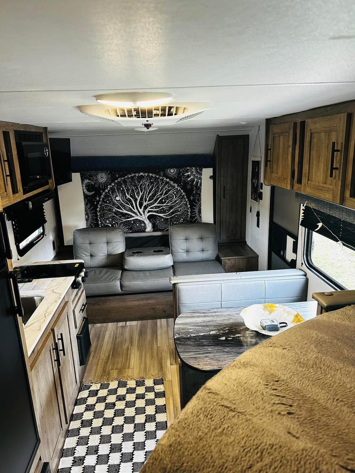 Live the experience of an unforgettable trip in our comfortable and equipped mobile home (RV)! 🌳🏡🚐 this is RV living! Perfect for nature lovers, couples or small families, this RV combines modern comfort with the charm of an outdoor experience. - Space for up to 4 people - Equipped kitchen, WiFi - Bathroom with hot water shower - Air conditioning and heating - Outdoor area with chairs, table and space for grill - Soccer area ⚽️ and 🏀 (It is located in the backyard of a private house).