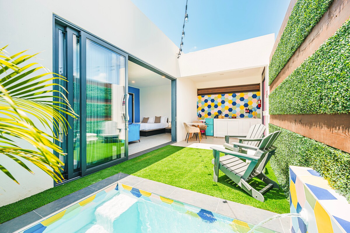 Your own private studio in an adults-only boutique retreat, designed for comfort and seclusion. Each space features a private plunge pool, lush garden, fully equipped kitchen, king-size bed with premium linens, sleek bathroom with hot shower, and a spacious living area with a 65" HD TV. A curated Aruba guide and attentive guest services complete your stay. Welcoming 3 guests per studio.
