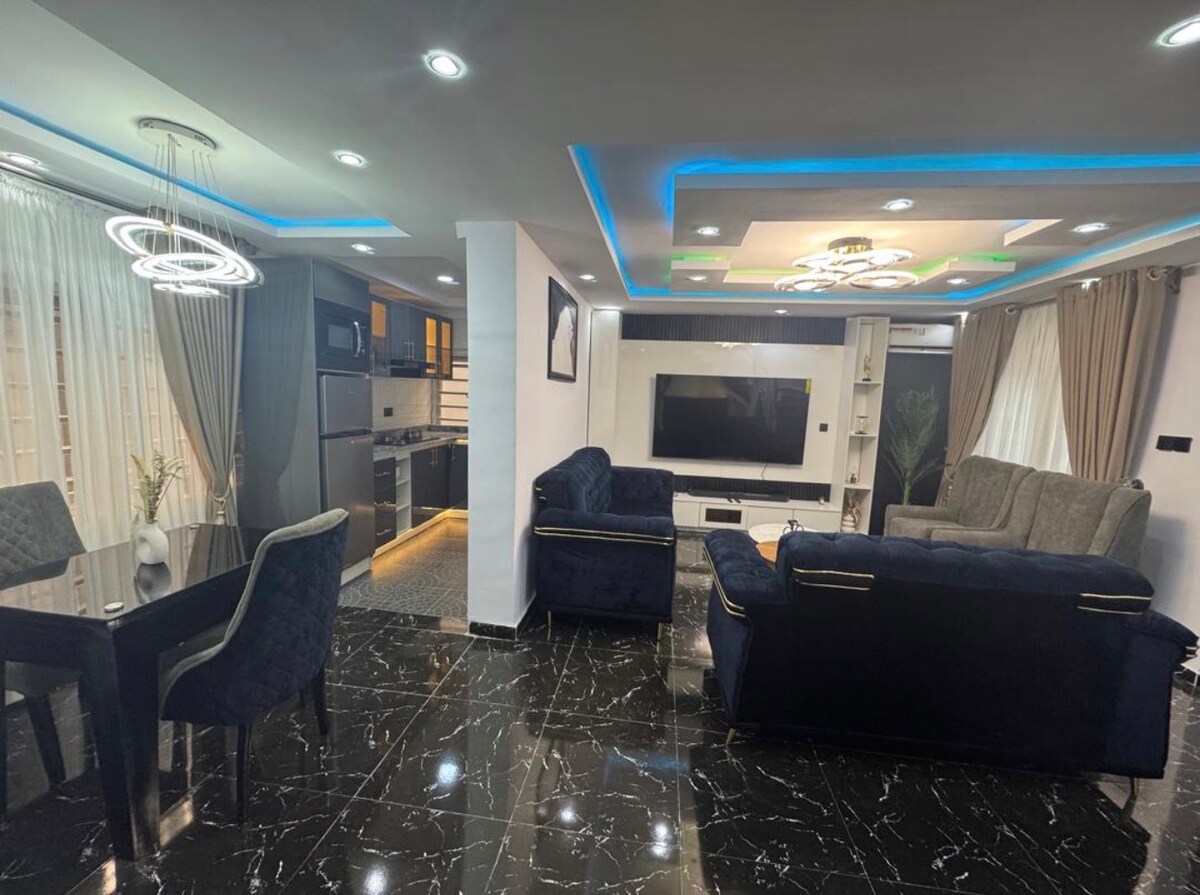 Skopri l-eleganza u l-kumdità f'din il-kamra tas-sodda u s-salott lussużi mgħammra b'mod sabiħ. Maħsuba kemm għal żjarat qosra kif ukoll għal żjarat itwal, Il-klijenti li joqogħdu fil-qalba ta' GRA Ikeja se jkunu jistgħu jaslu malajr għall-iktar postijiet u kumditajiet popolari bħal Ikeja City Mall, Radisson Blu Hotel, The Place Restaurant, Cubana Lounge u l-Ajruport Internazzjonali ta' Murtala Muhammed — kollha ftit minuti 'l bogħod. Il-viċinat sigur, kwiet u ideali għal min qed jivvjaġġa fuq xogħol jew għal min qed ifittex post fejn joqgħod ta' kwalità għolja ġewwa Lagos.