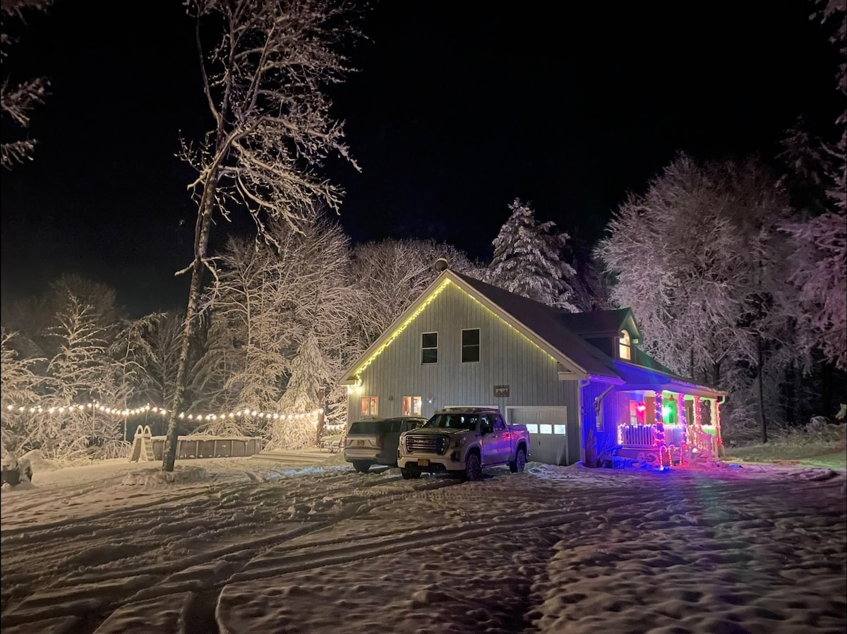 Meta tagħfas il-kaxxi kollha, din il-kabina sabiħa għandha dak kollu li tista' tixtieq għall-vaganza tiegħek mill-ħajja tal-belt! Ħames ettari ta' foresta privata tinkorpora l-burdata staġjonali perfetta hekk kif tmur mill-kamra sabiħa għal fuq il-gverta enormi madwarha. Irrilassa u gawdi l-propjetà bil-hot tub, fireplace, A/C, grill tal-BBQ u sodod ħdejn il-pixxina tagħha. Għal dawk li huma avventurużi, agħti titwila lejn il-komunità tal-aċċess għal-lag (mhux sajd), ix-xmajjar, il-mogħdijiet għall-mixi fit-tul u l-istazzjonijiet tal-iskijjar fuq ponot tiegħek.