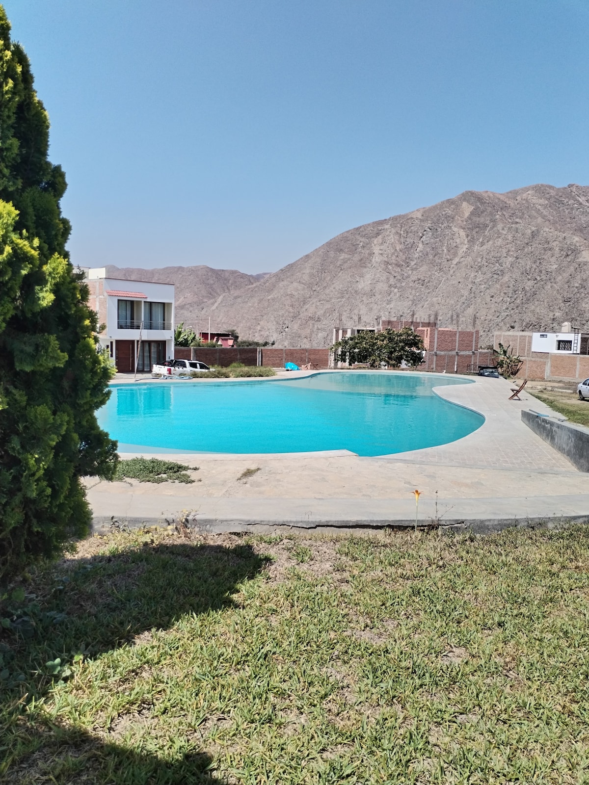 Relájate con la familia y/o amigos en un tranquilo lugar, diseñada para compartir momentos únicos. La casa tiene capacidad hasta 8 personas. Ambientes de uso común : Piscina, cancha de Fulbito y basquet. Aviso importante : * 1 habitación permanece cerrada. *no hay salvavidas en la piscina, patera y piscina honda de 1.60 de profundidad, su uso va por responsabilidad de los que hacen la reserva. * los niños deben ingresar a la piscina acompañados. Falta grave a ingreso mayor a reserva.