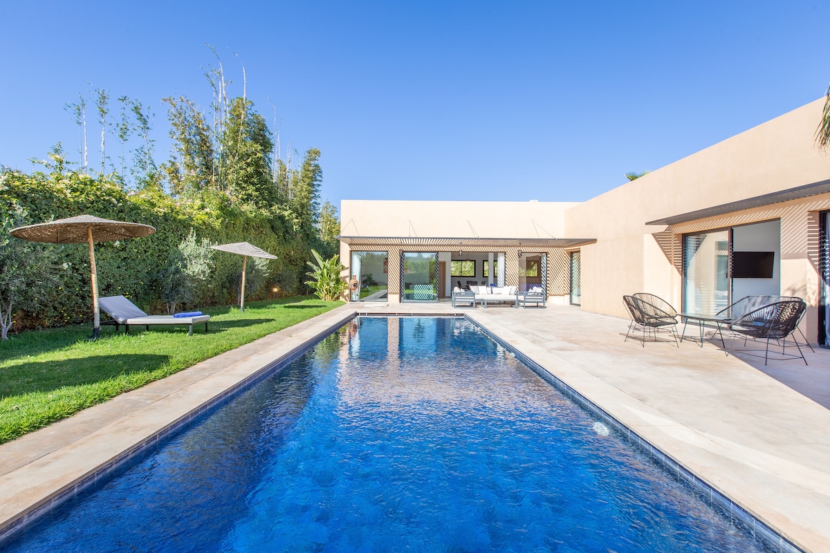 Villa li tinsab 30 minuta 'l bogħod minn Gueliz f' propjetà sigura mill-isbaħ 24 siegħa kuljum bi grawnd tat-tennis komunali u pixxina privata. Il-villa tikkonsisti fi 3 suites kbar ħafna li kull wieħed minnhom għandu l-fireplace tiegħu, TV (Netflix bla ħlas), 3 kmamar tal-banju, pixxina żgħira msaħħna fuq ġewwa, pixxina privata fuq barra u ġnien privat li ma jinsewx, salott b' fireplace. Mejda tal-ikel li tista' tinbidel f' pixxina u mejda tal-ping pong. Idealment adattat għal rilassament kwiet.