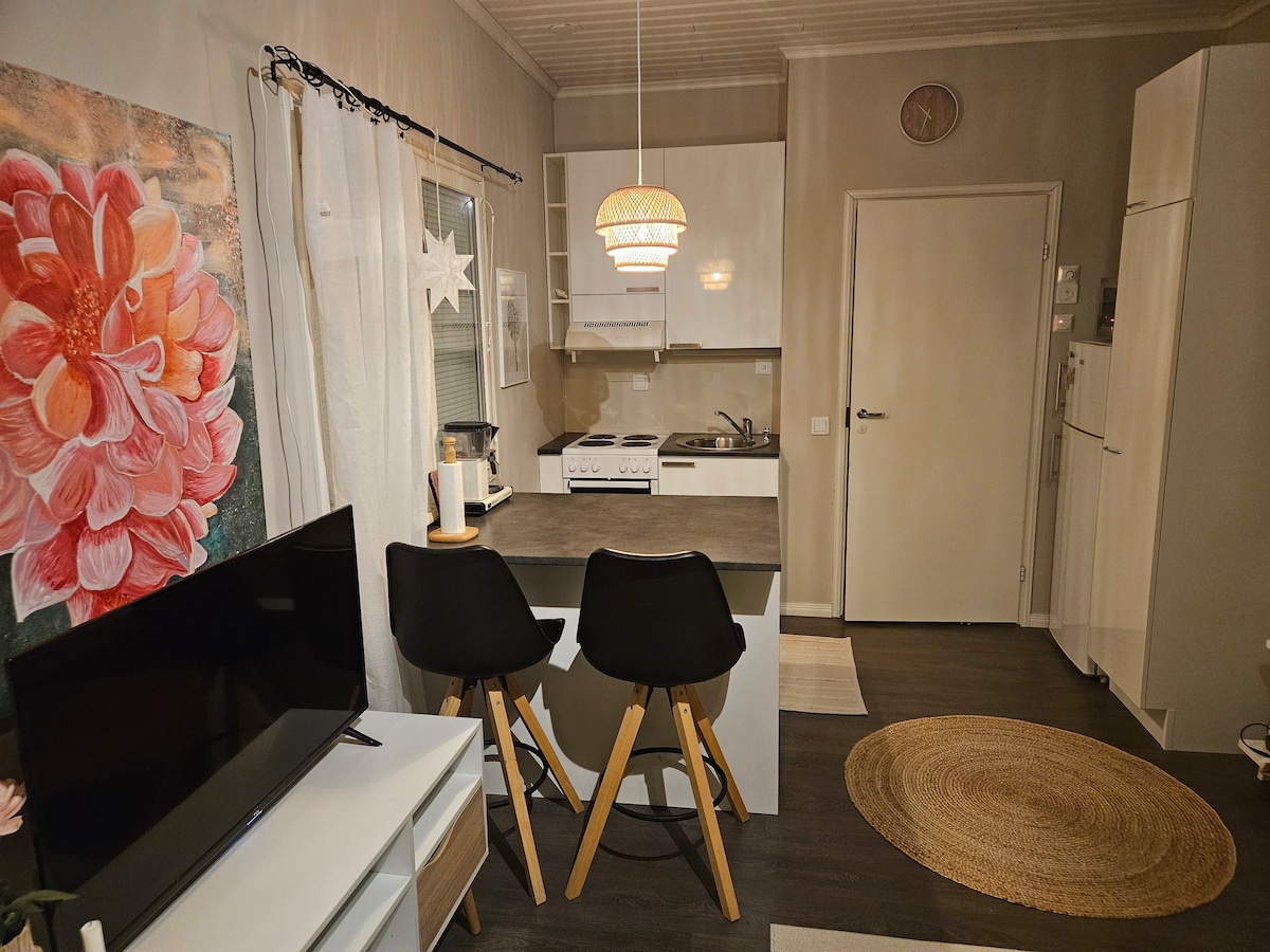 Merħba f'Oulu, Belt mill-Isbaħ! 💎 Dan l-appartament modern u imdawwal ta' 35m² jista' jilqa' sa 4 klijenti. ✨ Joffri l-iktar konvenjenza rari fiċ-ċentru tal-belt: parkeġġ GARAGE B'XEJN u sigur + iċċarġjar tal-EV bil-ħlas. Tinsab ftit passi 'l bogħod mill-Park sabiħ ta' Hupisaaret u qrib tas-servizzi kollha taċ-ċentru tal-belt, għalhekk ideali kemm għax-xogħol kif ukoll għad-divertiment. Għandha kċina mgħammra b'kollox (bit-te u l-kafè!), magna tal-ħasil tal-ħwejjeġ fl-unità u gallarija Franċiża sabiħa. Għall-kumdità tiegħek, il-bjankerija u x-xugamani huma inklużi.