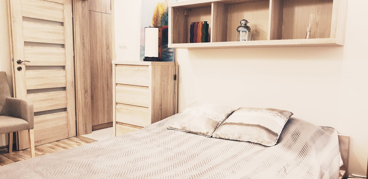 Appartament studio mgħammar b 'kollox. Standard għoli. Il-ħitan huma mżejna b 'wallpaper tad-disinjatur ta' livell għoli. L-appartament għadu kif ġie rinnovat. Parkeġġ taħt l-art bla ħlas. Fil-qrib: 1. 3 minuti mixi lejn il-Park tas-Saħħa. 2. 15-il minuta mixi minn Orientarium Park, Łódź Zoo, Ġnien Botaniku sabiħ u wieħed mill-akbar parks tal-ilma "Aqua Park Fala" 3. 5 minuti bil-karozza jew 30 minuta bil-mixi Atlas Arena - post ta 'kunċerti u avvenimenti kulturali. 4. 5 minuti bil-karozza Manufaktura
