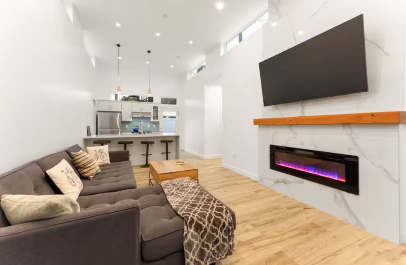 Experience a unique stay in "The Hills"! This stunning modern smart home is just minutes (walking distance) from Universal Studios & the Hollywood Bowl. Sleeping up to 4 guests, it features a cozy indoor fireplace, a state of the art Sonos sound system, & custom powered window shades for ultimate comfort. Enjoy a fully equipped kitchen, private parking, a spacious patio & backyard—perfect for morning coffee or evening wine. With over 100 glowing reviews, book now for an unforgettable LA getaway!