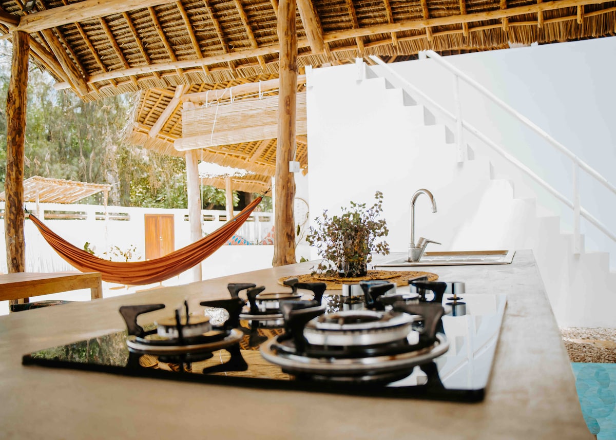 In the heart of Paje, yet worlds away. Our full-service retreat places you within walking distance of the beach, boutique cafés, and the island’s most talked-about dining experiences — while offering the privacy of your own sanctuary. From housekeeping and security to seamless concierge support, every detail is handled. Stay central. Stay private. Stay elevated. 📡 WiFi: 🚀 High-speed, ideal for work, streaming & live calls ⚡ Power: 🔋 Solar • 🔌 Backup batteries (no power cuts)