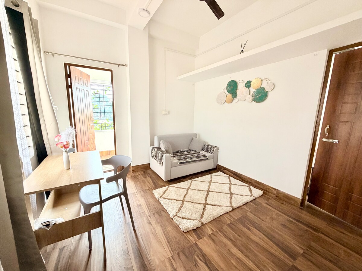 Merħba f' Ekum qrib l-Ajruport LGBI,Guwahati. Azara, li tinsab f' Udayan Path, f' żona residenzjali paċifika li toffri dak kollu li teħtieġ għal żjara komda! Punti Ewlenin tal-Akkomodazzjoni: •Sodda ta' daqs queen b' saqqu oħxon ta' 4 pulzieri fuq il-pariri tal-klijenti, stazzjon tax-xogħol u gwardarobba •Il-kċina bi friġġ, filtru, cooker tal-gass, ċmieni u oġġetti tat-tisjir •Iż-żona tal-ikel b' smart TV u WiFi b' veloċità għolja • Riżerva tal-enerġija 24 siegħa kuljum •Naddaf il-kamra tal-ħasil bil-geyser • Sorveljanza tas-CCTV 24 siegħa kuljum • Il-gallarija privata • Parkeġġ b' żewġ roti disponibbli