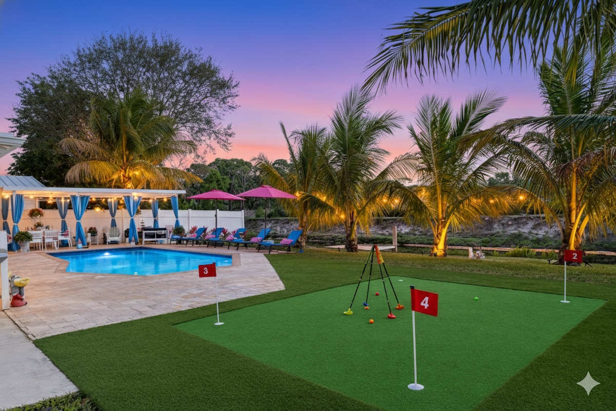 *10 minuti bogħod miċ-Ċentru, mill-Ajruport u mill-Gżira ta' Palm Beach *Irqad komdu 7 (King, Queen, Twins (2), Sodda Pull-Out) *Bitħa Turfed w/Hot-Tub, Mini-Golf, Firepit, Grill, Tiki Bar, Cornhole, Bocce, Frisbee Golf, Connect-4 *Arcade w/Pacman, Galaga, Golden Tee, Nintendo Switch, Board Games *Interjuri ġodda (3 kmamar tas-sodda/2 Banjijiet Sħaħ) * Kċina Mgħobbija Kompletament w/Bar tal-Kafè * Tagħmir tal-Bajja u Pickleball (Siġġijiet, Xugamani, Umbrella, Cooler, Spike Ball, Kan-Jam) *Blokok mill-korsa tal-golf "The Park"
