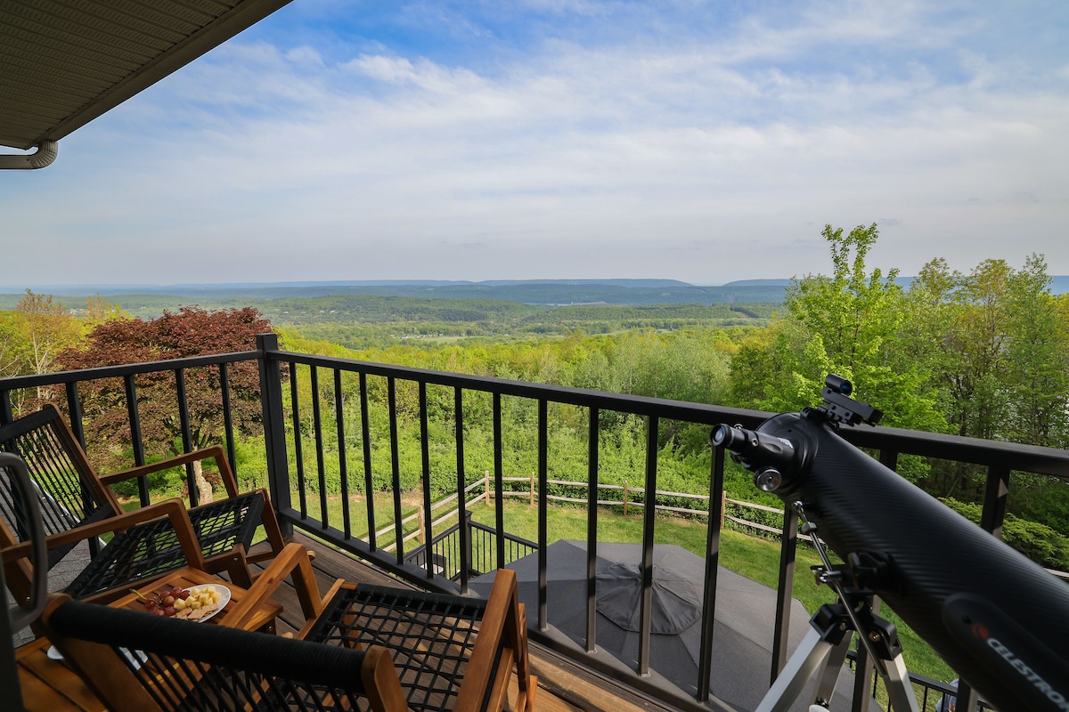Chalet 4BR/3BA li għadu kif ġie rranġat fuq 10 ettari privati bis-siġar fil-Muntanji Pocono. Jorqdu sa 12-il klijent u huwa mimli kumditajiet: sawna, fireplace fuq ġewwa, fossa tan-nar fuq barra, żewġ stazzjonijiet tax-xogħol apposta b' Wi-Fi veloċi, spazju tal-yoga, kamra tax-xemx u kċina mgħammra b' kollox. Kemm jekk qed tfittex avventura kif ukoll jekk qed tirrilassa, se jkollok aċċess ta' malajr għall-iktar attrazzjonijiet popolari tal-Muntanji Pocono-whitewater rafting fuq ix-Xmara Lehigh u skiing f' Blue Mountain, Camelback, Jack Frost, jew Bear Creek.