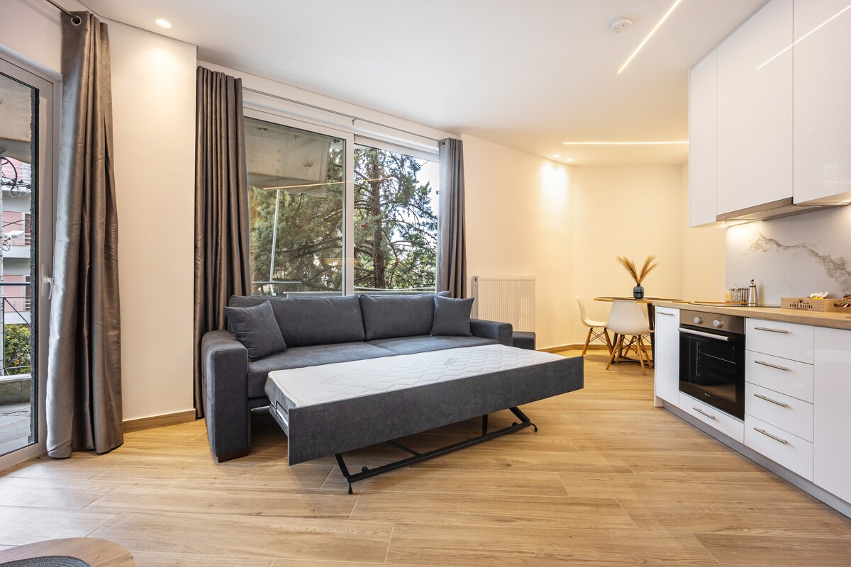 Cozy Loft f'Chalandri komdu, imdawwal, qrib ħafna tal-metro. Ideali għal koppji jew familji li jixtiequ jesploraw Ateni. 5' mill-Metro ta' Chalandri 20 minuta miċ-ċentru ta' Ateni Terrazzin privat b'veduta, bbq. Il-klijenti għandhom wifi, doċċa bl-ilma sħun f'ambjent bl-arja kkundizzjonata. Kafè, te, toaster u għasel huma pprovduti!