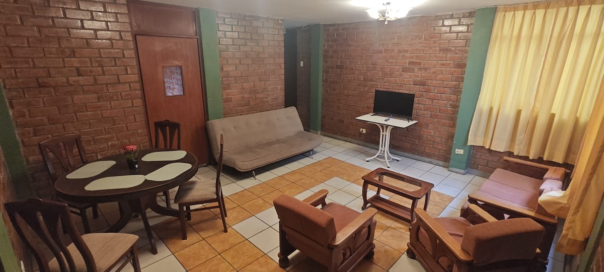 Gawdi żjara komda, sigura u kwieta f' dan l-ewwel sular kompletament mgħammar, 6 minuti 'l bogħod mill-Plaza de Armas, ideali għat-turisti jew għan-nies li jżuru Ica għax-xogħol jew għall-mistrieħ. L-ispazju għandu 2 ikmamar tas-sodda, kamra tal-ikel, kċina mgħammra, kamra tal-banju privata, kamra tal-ħasil, WiFi bla ħlas u carport. Dak kollu li għandek bżonn biex tħossok id-dar, li jinsab f' urbanizzazzjoni b' sorveljanza u aċċess faċli.