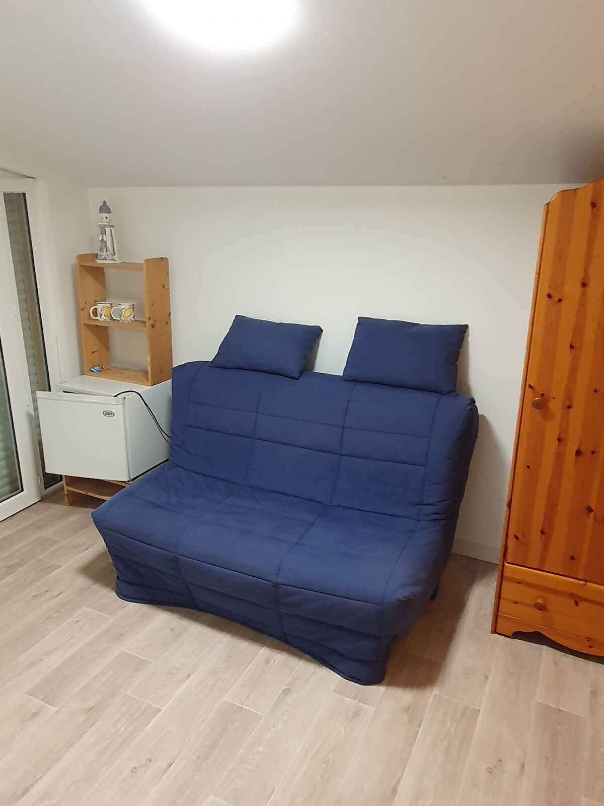 Kamra sabiħa f 'kabina indipendenti (16 m2) b' kamra tal-banju u tojlit niexef. Friġġ żgħir. Bjankerija tas-sodda komda ħafna, testimonjanali ta 'appoġġ! Viċinat kwiet ħafna (xi kultant jiġi nnutat il-kant tal-papri tal-ġirien tagħna). Mogħdijiet tar-roti 50 m 'il bogħod. 5 minuti bil-karozza mis-suq. L-ewwel bajjiet ta 'Pyla: 10 minuti sewqan. Nipproponilek tħejji kolazzjon sħiħ (10 €/pers): xarba sħuna, meraq tal-frott, frott 1, għaġina 1, 1/2 baguette, butir, ġamm.