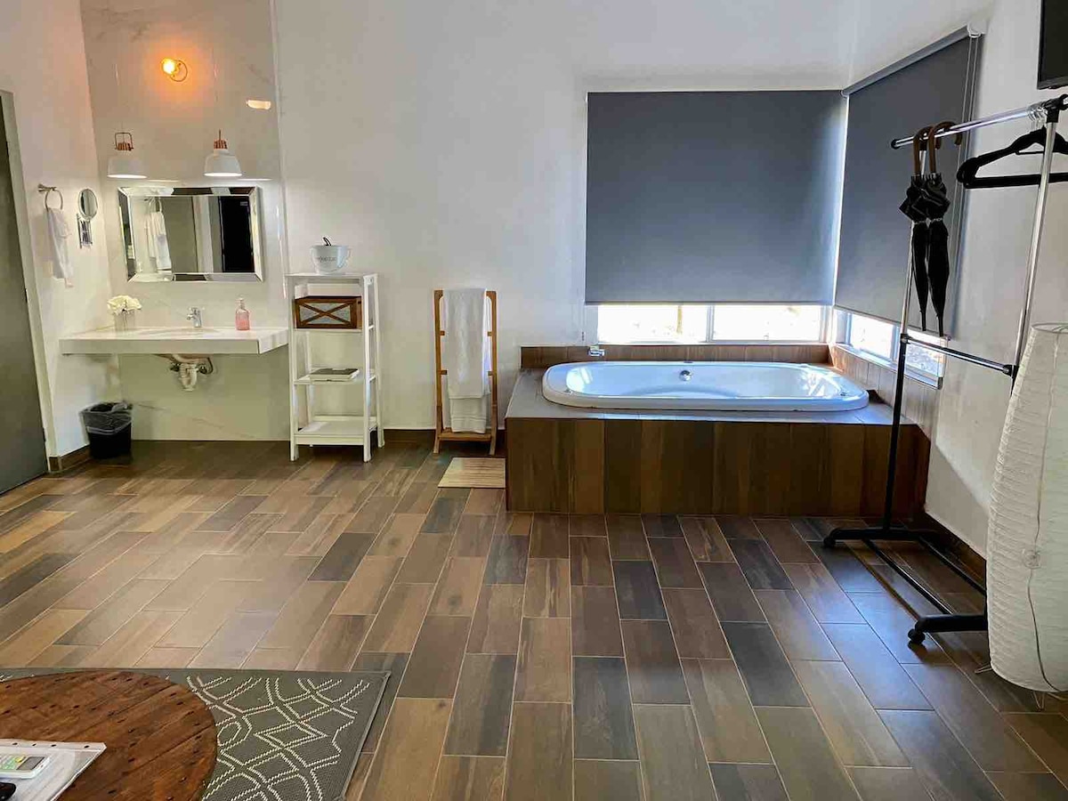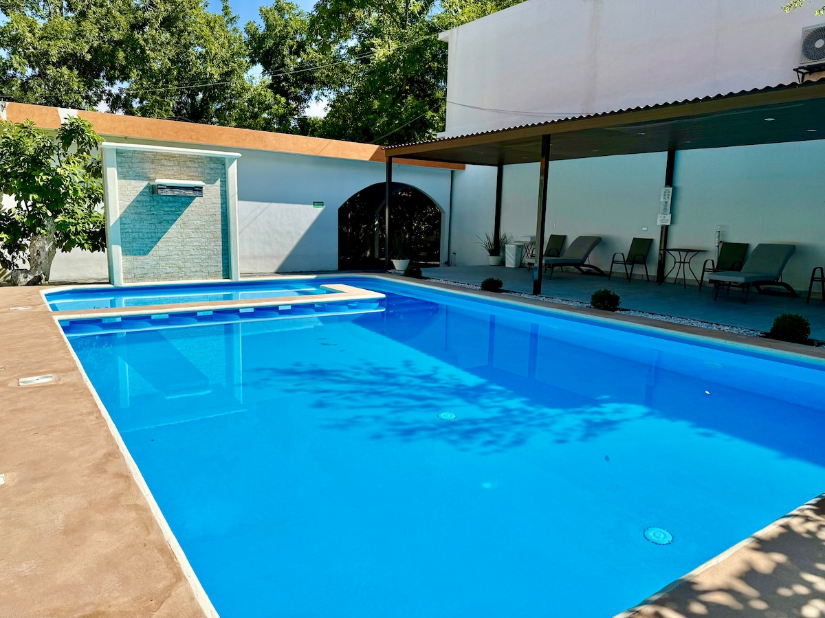 Kamra indipendenti sabiħa b' mini-split A/C, kamra tal-banju privata, li għandha sodda king size, uffiċċji, lampi, TV, mejda, żewġ siġġijiet, magna tal-kafè, platti, kikkri u pożati. Għandu aċċess għal terrazzin b' barbikju, friġġ, sink, mejda u siġġijiet fuq barra. Hija blokka waħda mit-triq ewlenija u tliet blokok mill-Pjazza Reloj.
