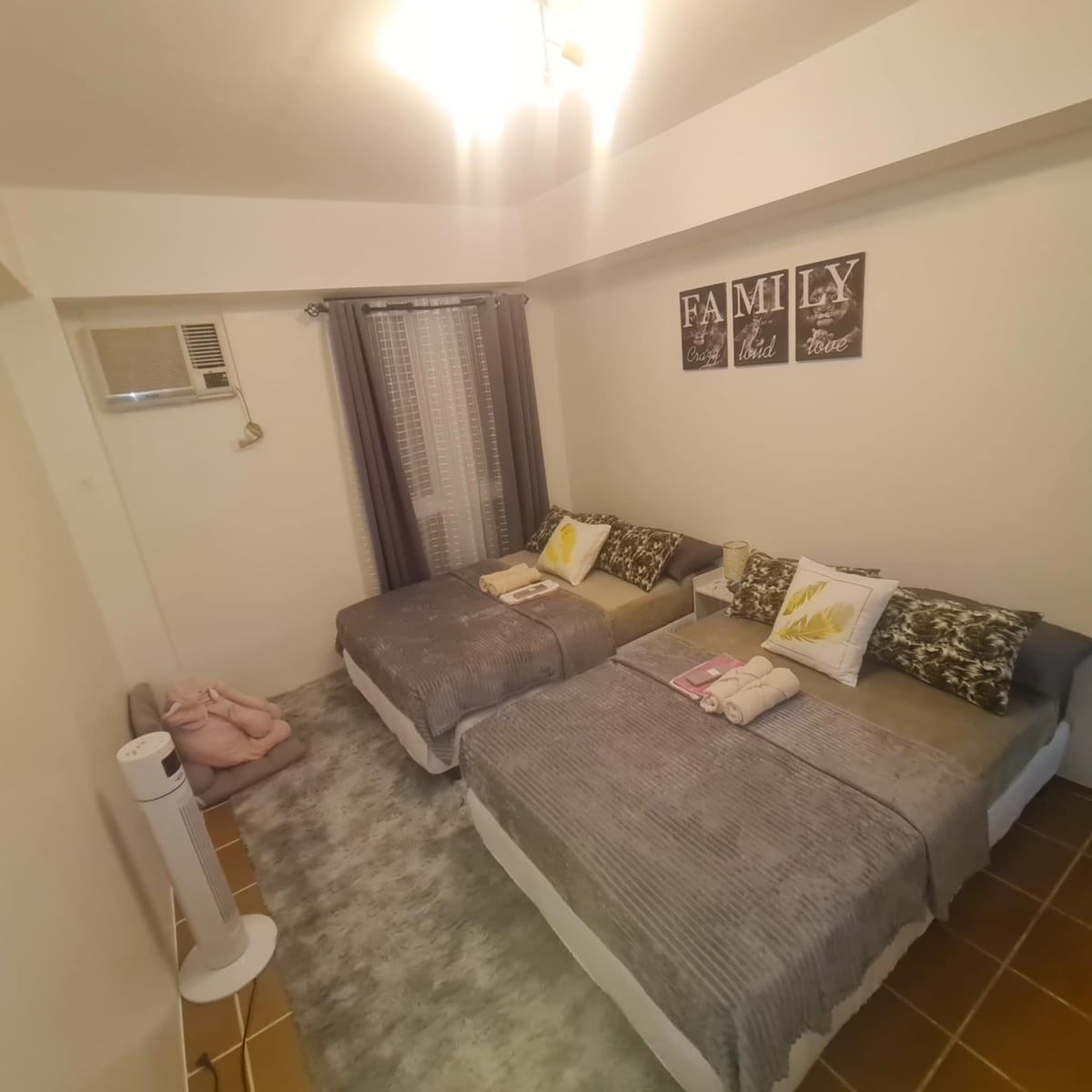 Post: Junction, Cainta, Rizal Id-dar tiegħek 'il bogħod mid-dar 🏠 Aħna noffru post ideali għal post fejn toqgħod komdu u kwiet. L-okkupanza massima hija ta' 4 persuni, inklużi kemm adulti kif ukoll tfal. L-ebda Viżitatur. Il-familja/ħbieb li jixtiequ jżuru għal ftit sigħat MHUMIEX permessi. Il-pets huma mistiedna joqogħdu fil-post tagħna 🐶🐱 Madankollu, bħala korteżija għall-klijenti l-oħra, ma jistgħux jgħumu fil-pixxina. Jekk jogħġbok naddaf wara t-trabi tal-pil tiegħek. Il-viċinat tagħna jimplimenta "Politika Stretta Kontra l-Istorbju"