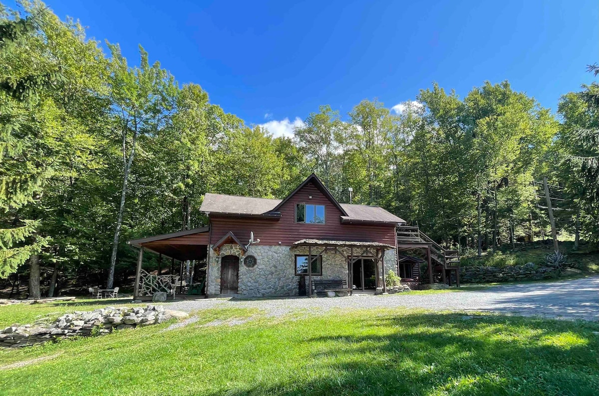 Il-post perfett biex tqum fis-siġar jew tqatta 'tmiem il-ġimgħa mal-ħbieb! Irrilassa fil-kalma u s-sbuħija panoramika mill-porch tiegħek stess! Madwar art statali ftit minuti biss minn bosta mogħdijiet għall-hiking u kaskati fil-park tal-istat tal-art imwiegħed. Gawdi qabża f 'wieħed mil-għadira fil-qrib jew f' nar toasty f 'lejl kiesaħ ġewwa ħdejn il-cooker tal-injam.