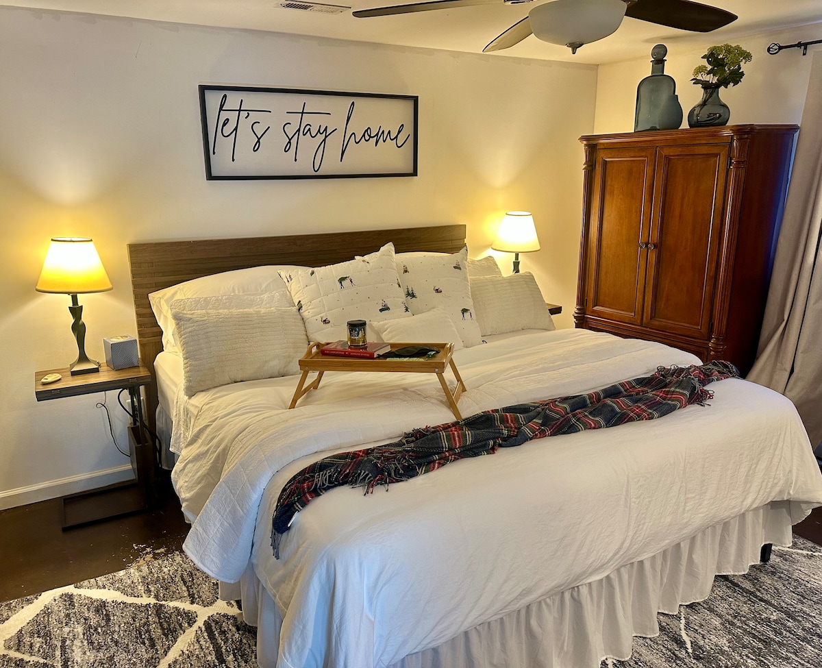 Our house is really special & unique. We want you to come enjoy the space! HUGE Private one room off the back of the house, complete with living room area, tv, king size bed, large private master bath, ability to set temperature (within range), futon, closet to store clothes or extra people! Kitchenette amenities available, coffee maker, microwave, fridge, toaster oven and George Foreman. If something you need isn't on the list let us know!