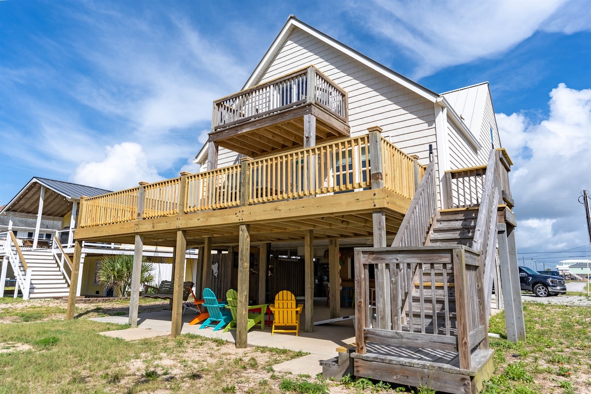 Welcome to "Toes In The Water", our beach home steps away from the beach w/ sound views. This updated house with open kitchen/dining/living room has 4 bdrms, 2 baths, & game room . Outdoor space includes multiple decks & screen porch. Patio has hot tub, dining table & chairs, fire pit & outdoor shower. 1st level is a game room w/ ping pong, darts, & more. Includes beach cart, umbrella, Shibumi, bikes, boogie boards, 2 person kayak, 2 paddle boards, surf board, & Level 2 EV charger.
