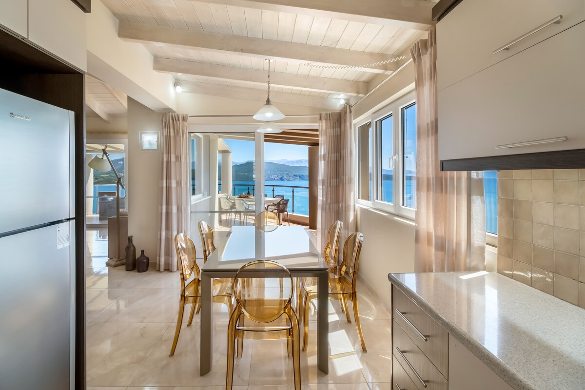 Infinity Pool • Veduta tal-Baħar • Villa Privata Qrib Lefkada Post għall-kwiet lussuż u privat b'pixxina infinity u veduti panoramiċi ta' Lefkada. Gawdi minn privatezza u lussu assoluti 'l fuq mill-Baħar Jonju. Merħba f'Orraon Luxury Villa, il-post fejn toqgħod esklussiv tiegħek ġewwa Apolpaina, 3 km biss mill-Belt ta' Lefkada. Din il-villa ġdida fjamanta toffri t-taħlita perfetta ta' arkitettura moderna u kweniet mingħajr tfixkil – mingħajr ġirien fil-qrib – Privatezza massima – u veduti panoramiċi tal-baħar ikħal skur li jħalluk bla nifs.