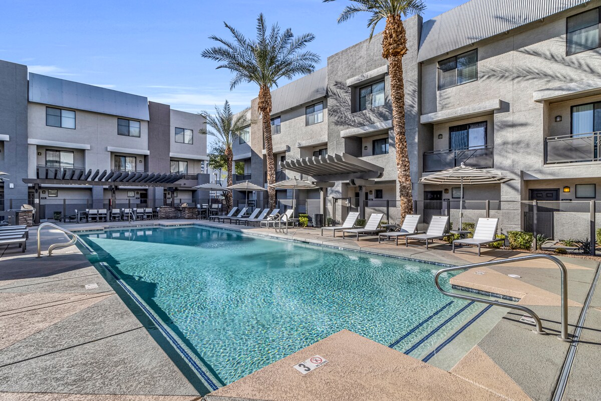 Appartament b' stil ta' loft modern u aġġornat. Minuti mill-Belt il-Qadima Scottsdale, il-mogħdija tar-roti Hayden, il-golf Frisbee, it-taħriġ tal-Golf, Sprint u ċ-ċentru tad-divertiment. Il-kumditajiet jinkludu żoni komuni, pixxina u spa msaħħna, kort tat-tennis, kamra tal-eżerċizzju, BBQ 's u parkeġġ mgħotti.