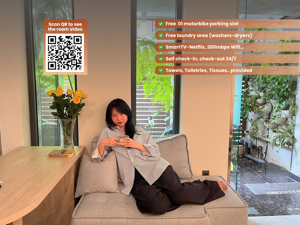 Bini ġdid, imniedi f' Diċembru 2023! L-istudjo komdu tagħna, li jinsab f' alloġġ kwiet fiċ-ċentru ta' Saigon, jgħaqqad disinn uniku ma' faxxinu mhux tas-soltu. Il-kumditajiet jinkludu kċina mgħammra b' kollox, kamra tal-banju b' doċċa tax-xita, Netflix u wifi ultrafast ta' 250Mbps. Fuq l-art tista' tieħu snack jew kafè fil-Hai Cai Tay Cafe. Għandna wkoll magna tal-ħasil/dryer għall-klijenti tagħna. Aħna qegħdin eżatt ħdejn il-Wink Hotel u f' distanza bil-mixi lejn ħafna ristoranti, kafetteriji u bars.