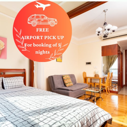 • Il-belt panoramika ta '180º mit-tieqa tiegħek • L-eqreb is-Suq Ben Thanh (500m), Downtown (5 minuti mixi), Triq Bui Vien (300m). • Spazjuż b '2 kmamar tas-sodda 2 kmamar tal-banju. • Kamra tas-sodda ewlenija b 'ensuite. • Bjankerija u xugamani friski • Pixxina fuq il-bejt ġewwa l-bini. • Gym u Pixxina Bla Ħlas Iffranka l-ħin prezzjuż tal-ivvjaġġar li għandek ġewwa l-Vjetnam billi toqgħod fil-qalba tal-belt ta' HCM