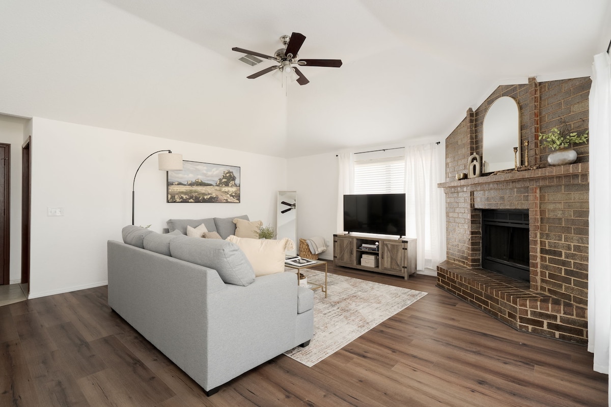 Dan id-duplex immudellat b 'togħma tajba jinsab ħdejn IL-KAMPUS ta' Uco, f' distanza bil-mixi għax-xiri, ħwienet tal-grocer u ristoranti fil-qalba ta' Edmond! Jinsabu b 'mod konvenjenti għal xiri lokali mill-aqwa, ħwienet tal-ikel mill-aqwa u aċċess rapidu interstatali għal OKC fiċ-ċentru. Irqad komdu 4. B 'wifi b' veloċità għolja, smart TVs, sodod komdi u kċina mgħammra sew, se tħossok komdu daqslikieku qiegħed id-dar! Għandek bżonn tirdoppja l-ispazju? Ikri ż-żewġ naħat ta 'dan id-duplex! Staqsi lill-host għall-għajnuna.