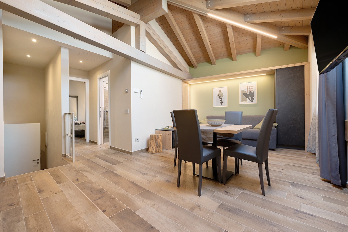 Is-suite hija ftit għexieren ta 'metri miċ-ċentru, li tista' tintlaħaq bit-trasport pubbliku, imdawra bl-ambjent għal attivitajiet mal-familja, panoramika, brillanti u esposta tajjeb ħafna. Għandha saqaf bi travi esposti, gallarija għall-ikla ta' filgħaxija li tagħti fuq il-lag, veranda panoramika b' siġġu karatteristiku li jdur għal mumenti ta' rilassament. Huwa adattat għal familji bit-tfal u pets żgħar. Jekk inti ċiklist, biker jew sport, tista' tuża d-depożitu għat-tagħmir/mutur tiegħek.