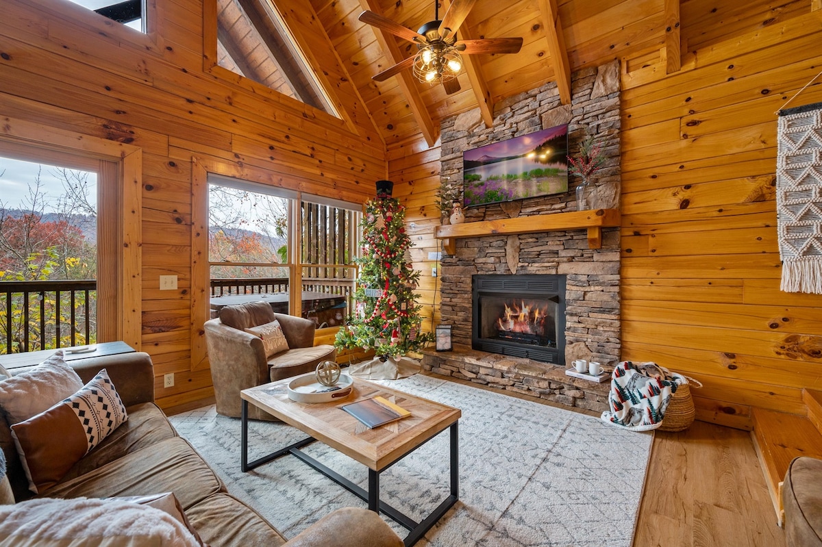 • Bini ġdid tlesta f 'Lulju 2022 b' soqfa vaulted u għoljin f' kull parti • 2 suites sbieħ king • Kabina lussuża mżejna bit-togħma • 2 gverti mgħottija b 'veduti panoramiċi mill-isbaħ li jħarsu lejn Greenbrier Pinnacle u Mt LeConte • Għamara tat-terrazzin ta 'livell għoli b' mejda tan-nar u hot tub • Aċċess għal Cobbly Nob Resort Kumditajiet: 3 pixxini fuq barra, kampijiet tat-tennis, toroq kompletament pavimentati u miżmuma, sigurtà 24 siegħa kuljum • Aċċess għall-Kors tal-Golf ta 'Bent Creek (18-il toqba, ħallas biex tilgħab)