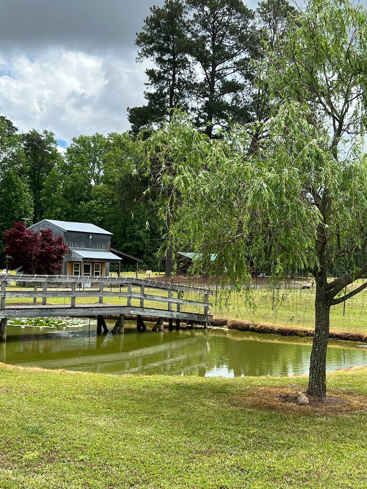Private pool house at Scarborough House in rural Stantonsburg, 20 min to I-95 and Wilson, 25 min to Greenville, 30 min to Rocky Mount. PRIVATE guesthouse. Pool is a SHARED outdoor space used by other guests on the property. Multiple rentals on site. Please be respectful. Located inside the fenced pool area and not suitable for small children. No swimming alone. Queen bed, kitchenette, smart TV, large shower and bath. Quiet countryside setting.