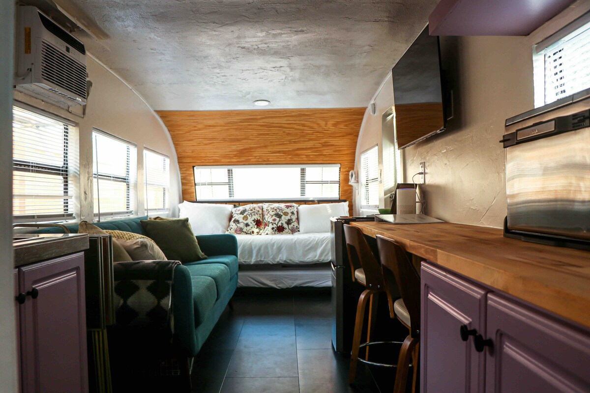 Skopri Spartanette Camper retro-chic tas-snin 1950 f'Downtown Tucson, perfetta għall-vjaġġaturi li jixtiequ żjarat uniċi! Dan il-post glamping, li ġie rranġat kollu kemm hu u għandu żewġ air conditioners ġodda, jgħaqqad il-kumdità moderna mal-ħajja tal-belt. Għandek daħla privata, parkeġħ u bitħa privata b'fire pit, logħba tal-cornhole u spazju fejn tistrieħ ftit 'il bogħod mill-ħwienet u r-ristoranti ta' 4th Avenue u l-Università ta' Arizona. Tista' tieħu l-pets miegħek! Skopri s-seħer ta' Tucson f'dan il-post għall-glamping.