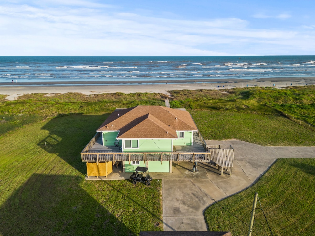 Hasta La Vista! Kick lura u rrilassa f 'din id-dar kalma u eleganti qrib il-bajja. Oqgħod bilqiegħda fuq il-gverta bil-kafè tiegħek u isma 'l-kanzunetti tal-għasafar tal-kosta u s-serħan tal-oċean. Ixwi xi żminijiet tajbin fuq il-livell tal-art. Ikollok cocktail delizzjuż fuq it-terrazzin waqt li tkun qed tilgħab cornhole. Agħmel s'mores ħelu fil-fossa tan-nar. Ħu mixja ta' malajr ta' bejn 3-5 minuti u blokka waħda sal-bajja mingħajr ma jkollok għalfejn tevita t-traffiku jew taqsam triq ewlenija. Gawdi l-istorja u l-faxxinu kollu tal-Gżira ta 'Galveston!