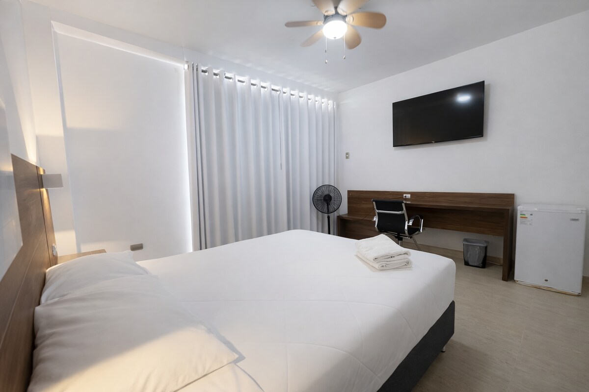 A comfortable and cozy double room at Hospedaje La Ruta Paracas, perfect for a peaceful stay for two people. Located just a few minutes from El Chaco Beach and the Paracas National Reserve. We offer a safe, family-friendly atmosphere, with access to a pool, a fully equipped kitchen, and a shared living-dining room. Outdoor parking with surveillance cameras is available. A practical, well-located option with everything you need to feel at home while exploring Paracas.