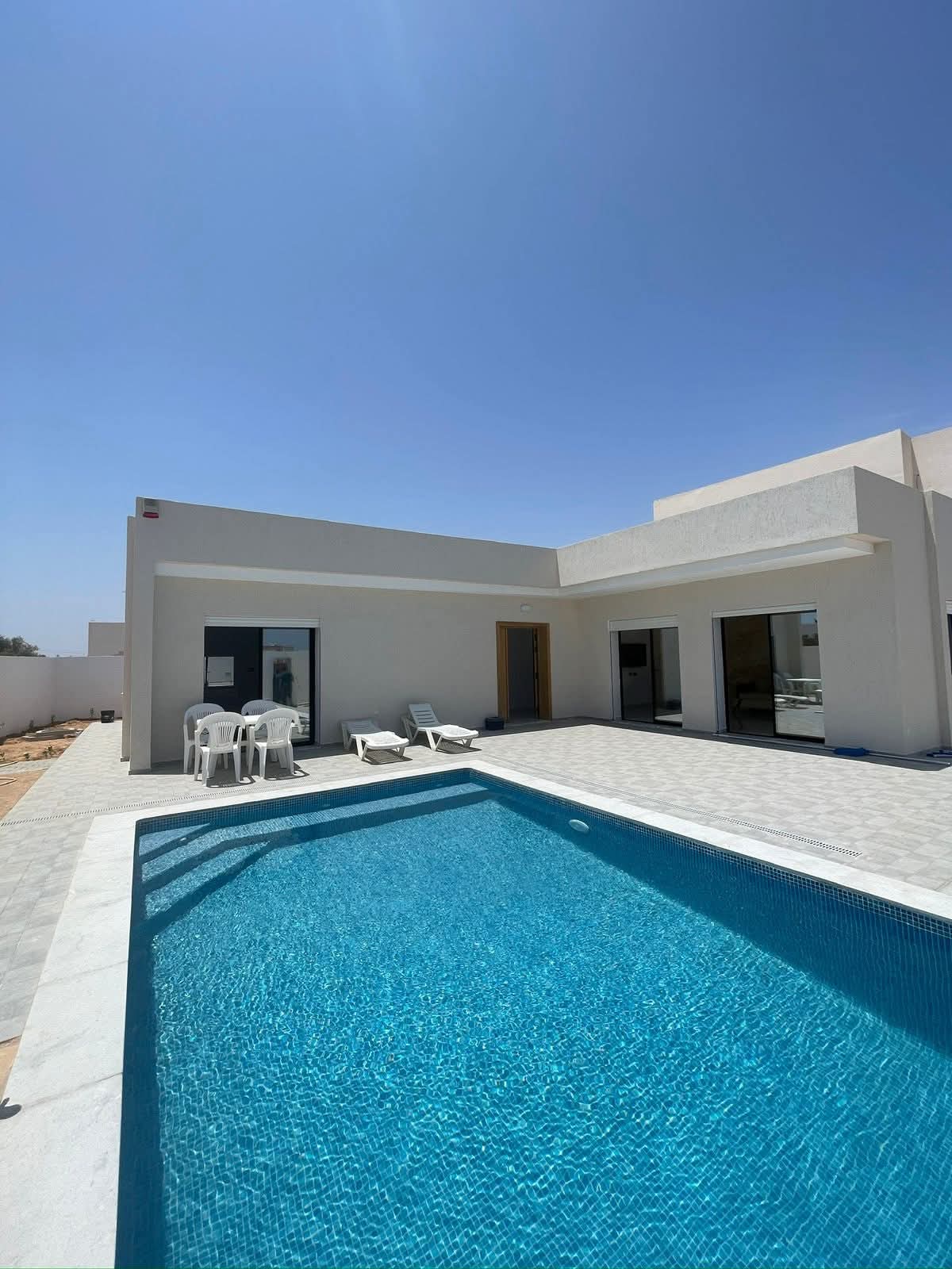 .Ce logement paisible offre un séjour détente pour toute la famille. villa de haut standing vue mer avec piscine priveé ❤️ 📍 en face hôtel Radisson Bleu Djerba se compose de: ✅ Piscine privée . ✅ 1 Suites parentale et 2 chambres à coucher , les chambres sont climatisé ✅ 3 salles de bain 🛁 ✅ un grand jardin , barbecue et un garage privé ✅ une cuisine moderne aménagée par des espaces de rangement et bien équipée . ✅ 1 salon et salle à manger ✅ Accès internet gratuit