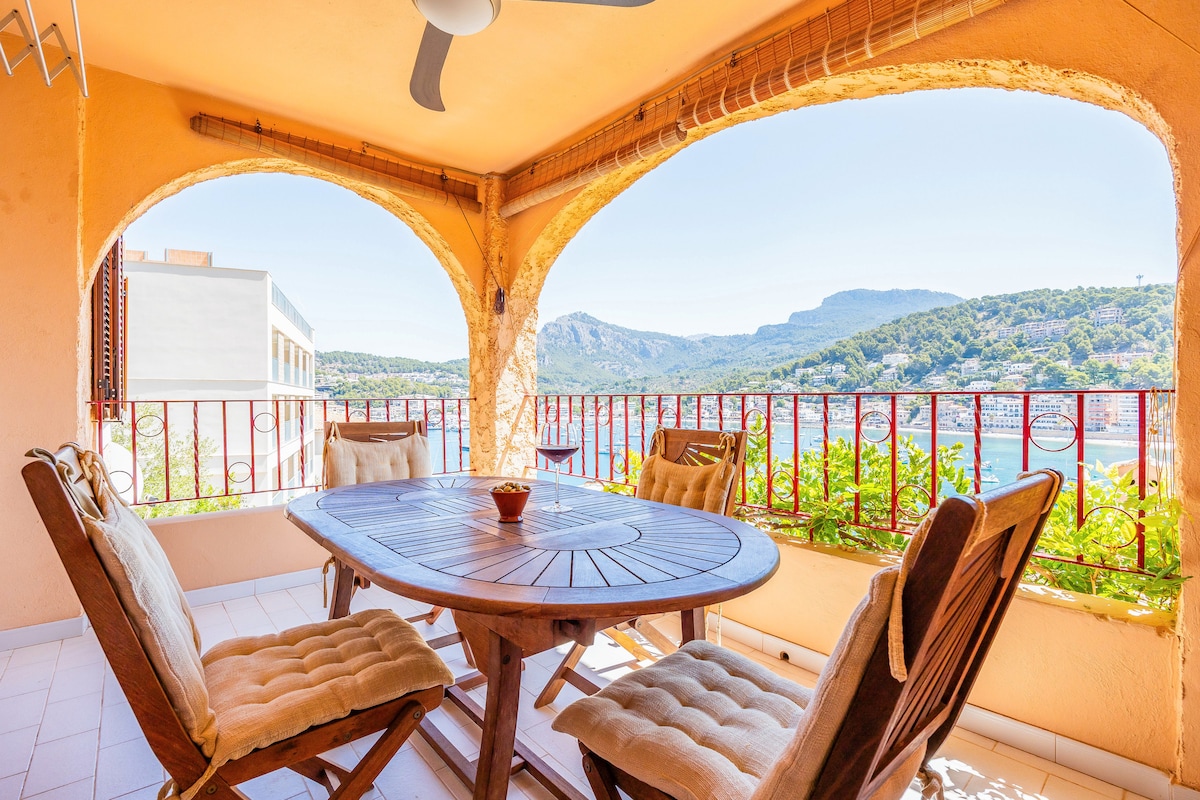 Din l-appartament tinsab f 'post ewlieni b' esponiment fin-Nofsinhar f' Port de Sóller. Huwa fuq livell ta 'triq, mingħajr taraġ u parkeġġ faċli quddiem id-dar. Dan l-aħħar ġie rinnovat, inkluż kċina ġdida u fih art llaminata tal-liżar sabiħa u nadifa, A/C, twieqi ġodda ta 'kwalità għolja u bibien tat-terrazzin magħmula mill-injam tat-teak bi ħġieġ doppju. Appartament komdu u ta 'kwalità għolja. Mit-terrazzin għandek veduta mill-isbaħ fuq il-bajja ta 'Port de Sóller u l-muntanji.