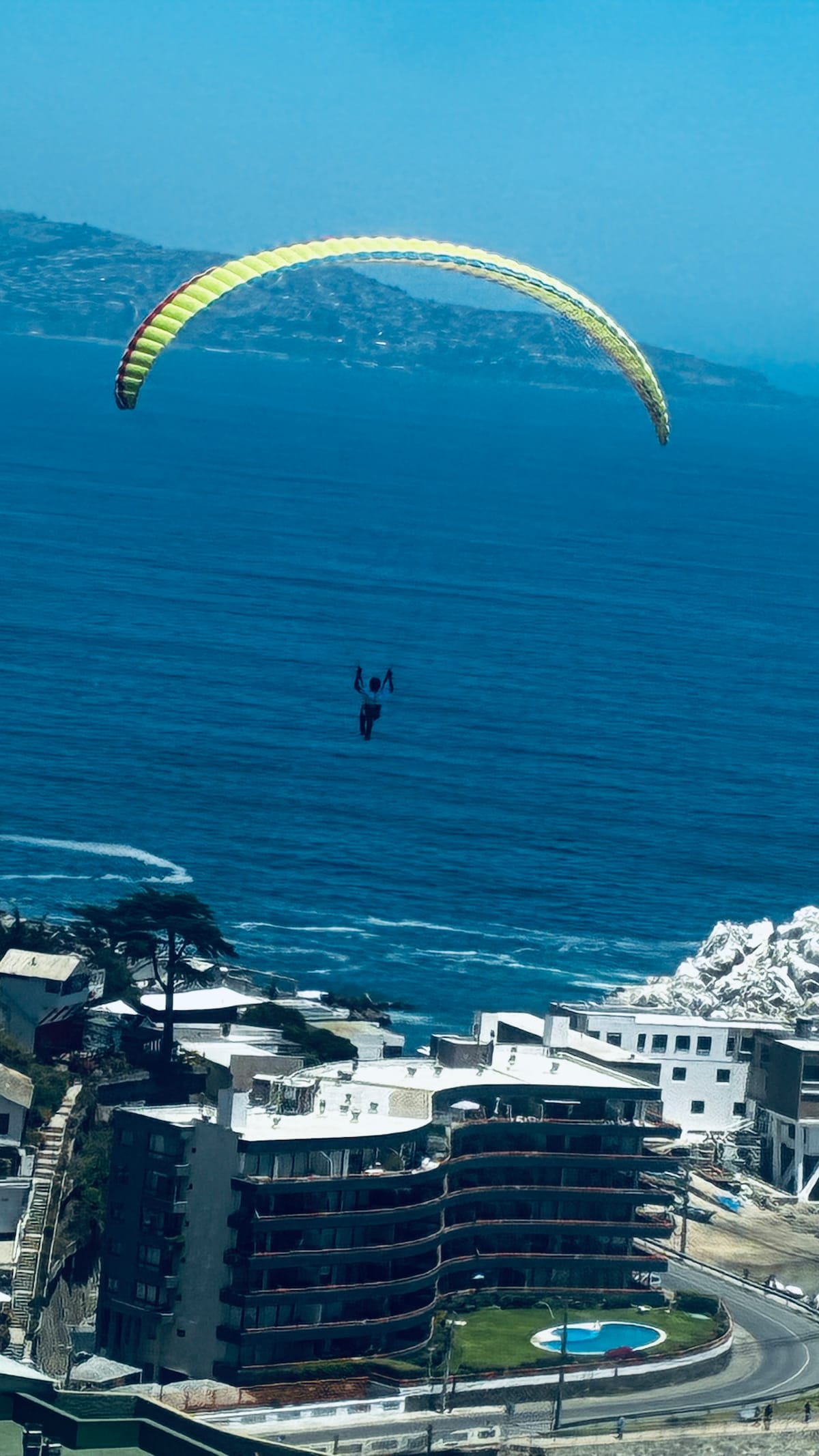 Appartament ta' studio sabiħ b' veduta tal-oċean, mgħammar b' kollox għal żewġ persuni. Il-kondominju għandu pixxina waħda fis-7 sular, concierge 24 siegħa kuljum, kafetterija u parkeġġ privat mgħotti. Aċċess għall-bajja ta' Cochoa permezz ta' taraġ fil-qrib (300 metru mill-bini) jew bil-karozza. L-appartament għandu WiFi, smart TV b' Netflix, hair dryer, xugamani, lożor, heater u armarju. Konnettività tajba u qrib ristoranti, kafetteriji, supermarkets, duni ta' Concón u bajja ta' Reñaca.