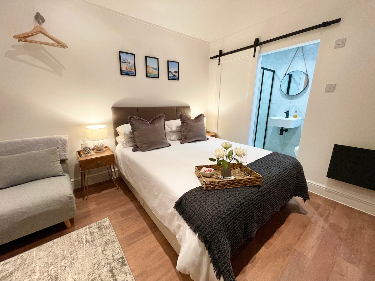 Appartament ta 'studio modern f' post paċifiku, kompletament fih innifsu b' daħla privata. Kamra tad-doċċa eleganti u kċina mgħammra tajjeb b 'magna tal-ħasil tal-platti, friġġ b' kompartiment tal-friża. Freeview TV b 'Netflix permezz ta' login personali. Faċli fuq parkeġġ fit-triq. F 'distanza ta' mixi għal O2 Academy, Bournemouth FC, Southbourne Beach u bars u ristoranti lokali fuq Southbourne Grove. Sewqan faċli lejn postijiet sbuħija famużi bħal Sandbanks u Durdle Door u li jistgħu jintlaħqu faċilment mill-Foresta l-Ġdida.