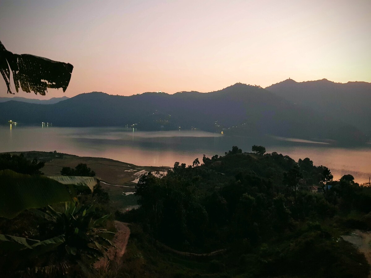 Għandna guesthouse fuq il-quċċata unika tal-Muntanji minn fejn tista' tara veduti panoramiċi tal-firxa ta' Annapurna u żewġ veduti tal-lag imdawra bin-natura f' atmosfera paċifika. Tista' tesperjenza l-ħajja hawnhekk, l-ikel delizzjuż u l-ħxejjex organiċi u l-kafè mill-ġnien tagħna stess. Jistgħu jsiru mixi qalb in-natura, tbaħħir, mixjiet fit-tul, attivitajiet tas-sajd. Din il-guesthouse bażi tad-dar hija mmexxija minn ex għalliem tal-Ingliż, aħna ħerqana li niltaqgħu miegħek u naqsmu l-ideat miegħek.