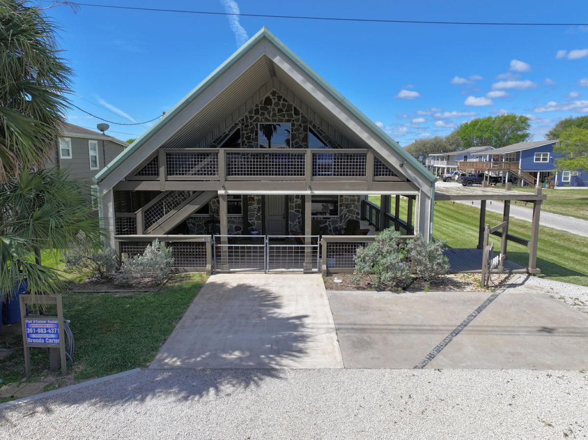 Din id-dar tinsab ġewwa Port O'Connor u ftit passi 'l bogħod minn Front Beach, hija l-quċċata tad-destinazzjonijiet tal-vaganzi! Ideali għas-sajd, għall-kaċċa, għall-festivals jew sempliċiment biex tirrilassa, l-akkomodazzjoni tagħna toffri dak kollu li tista' tixtieq. Il-veduti tal-Bajja ta' Matagorda huma impressjonanti, filwaqt li t-televixins u l-Wi-Fi jiżguraw il-konnettività mad-dinja lil hinn. Għandha kamra tal-ħasil tal-ħwejjeġ ġewwa d-dar u hemm karozza tal-golf disponibbli (tapplika tariffa addizzjonali). Esperjenza mill-isbaħ qed tistenniek fil-vaganza qrib il-bajja tagħna!