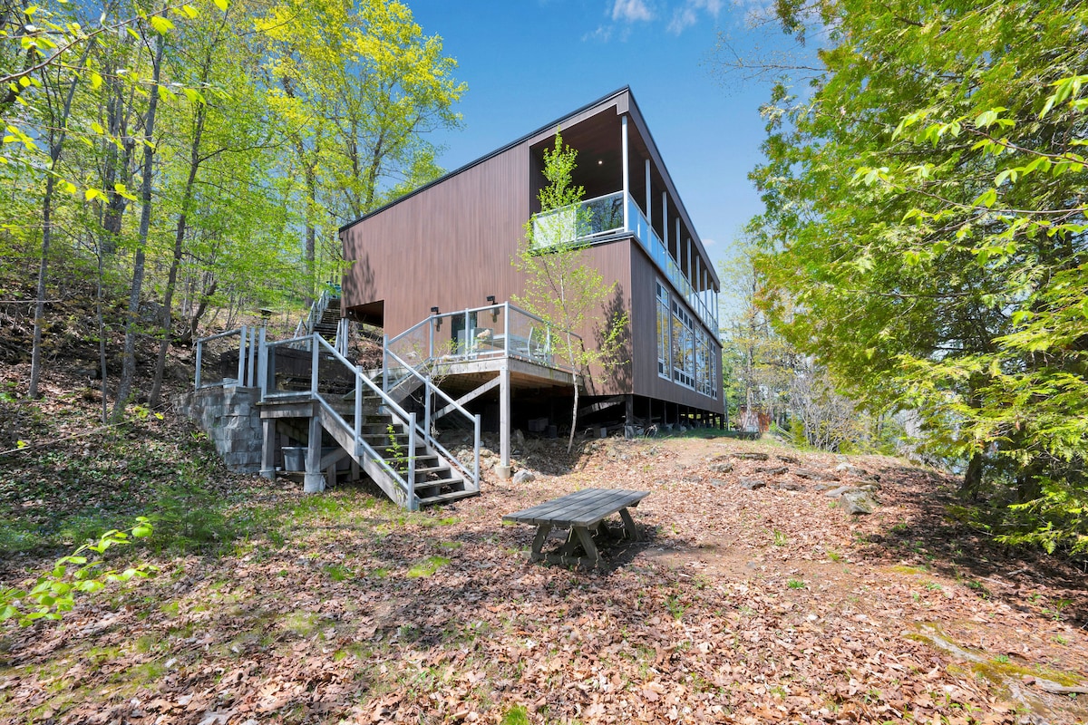 Post għall-mistrieħ li jista' jintuża sena wara oħra, mibni apposta għal Frontenac Arch, moħbi fil-boskijiet—privat, kwiet u ftit passi 'l bogħod mil-lag biex tmur tirkupra jew tagħmel avventura bil-qdief. Irrilassa fuq it-terrazzin taħt il-kwiekeb jew idħol fl-hot tub wara ġurnata ta' avventura. Gawdi minn saqaf għoli, twieqi kbar, forn tal-injam, fire pit fuq barra, kċina personalizzata, art imsaħħna, doċċa x-xita, banju antik u spazju miftuħ u ċar. 25 minuta 'l bogħod mill-Frontenac Provincial Park u 40 minuta 'l bogħod minn Kingston.
