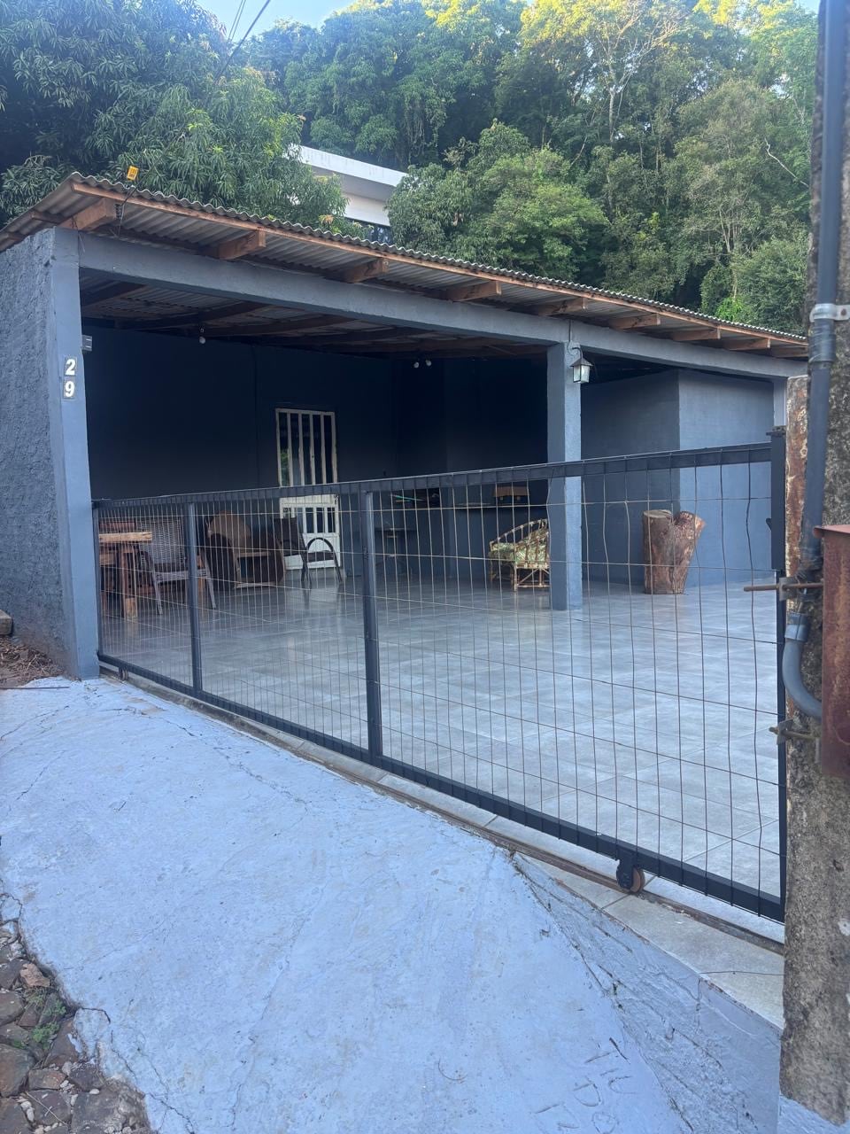 Casa com área externa ampla, ótima vista para o rio Uruguai, no espaço interno da casa temos um banheiro completo, uma cama de casal (podendo requisitar mais dois colchões de solteiro), um sofá cama, uma cozinha, cervejeira, lareira, ar condicionado, poltronas, smart tv e Wi-Fi. Ao lado da casa há um quiosque, com churrasqueira, bancada e pia, fogão a lenha, fogão a gás, geladeira, microondas e um banheiro.