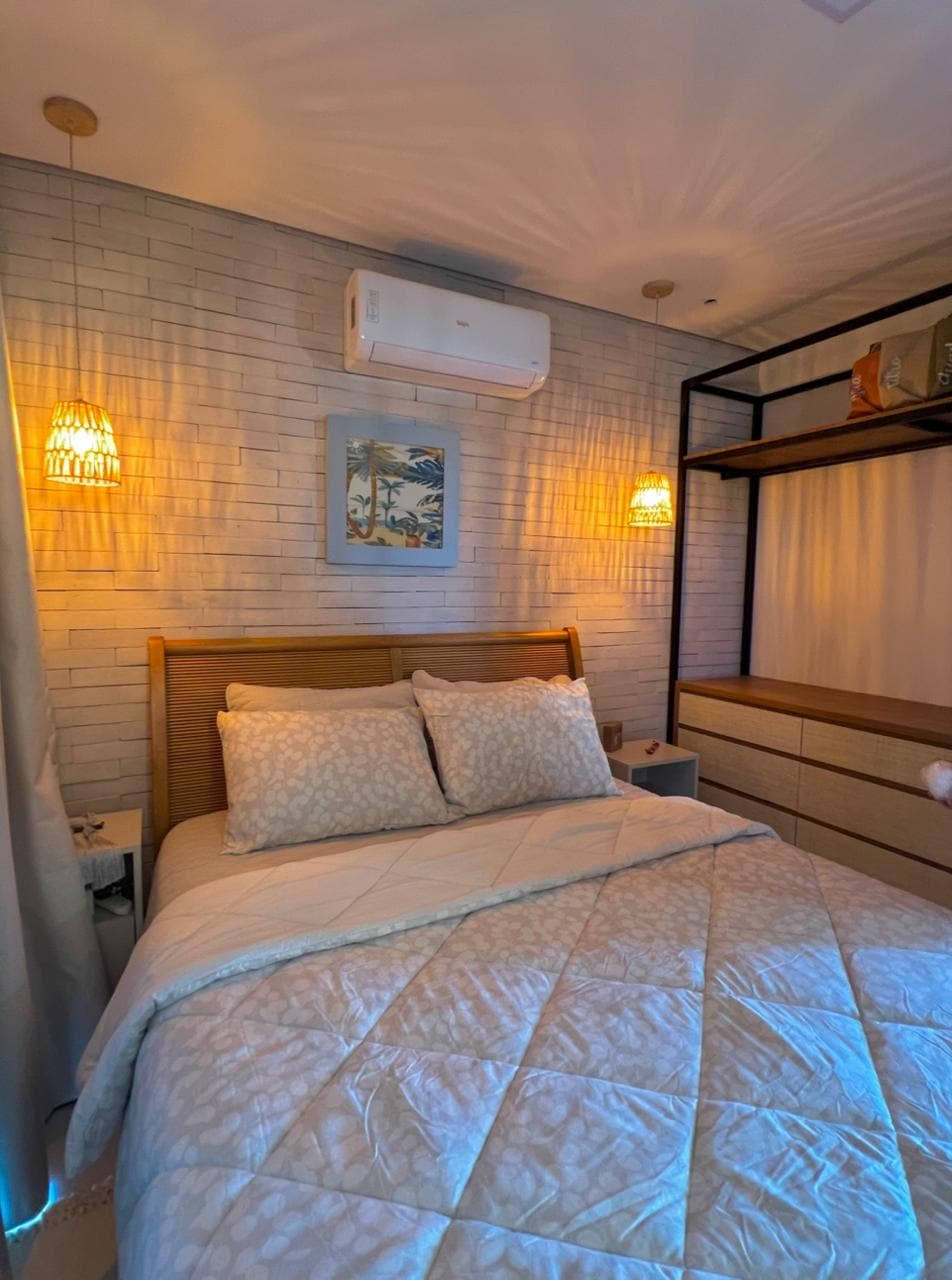 Apto aconchegante, pé na areia, a 100mt da praia, possuí 1suite, sala e cozinha americana (equipada), varanda com vista para piscina, WI-FI, área gourmet c/churrasqueira, terreno de 1200mt. Localizado em condomínio fechado a beira mar(praia limpa e tranquila), segurança 24h, natureza exuberante c/trilha ecológica, cabanas de praia, parquinho infantil, mercearia, padaria, restaurantes e academia. Venha curtir este paraíso chamado GUARATIBA 🌻