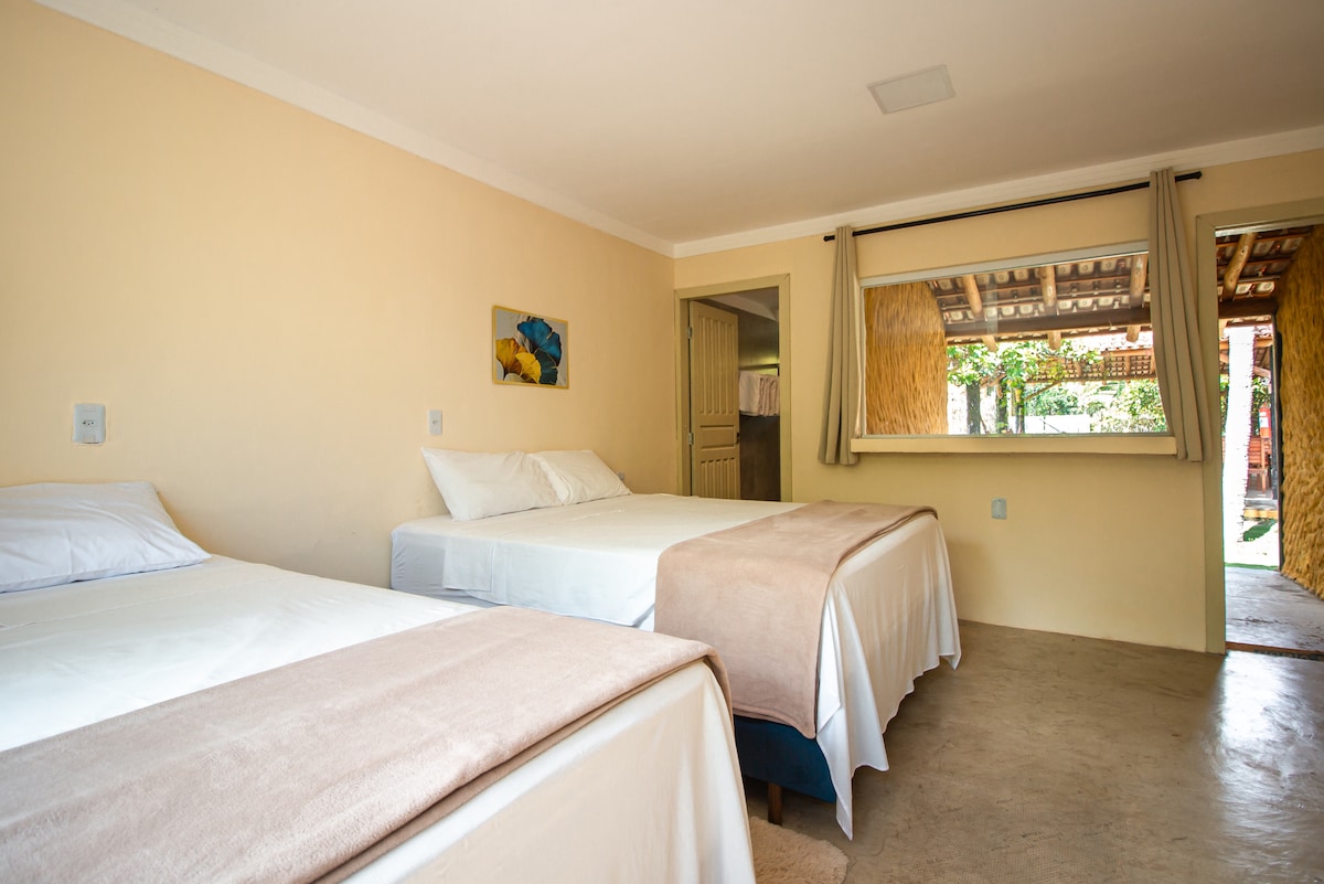 Kamra bungalow b' żewġ sodod doppji li jistgħu jingħaqdu wkoll u jsiru sodda doppja ta' daqs king. Jinsab f' Villa lussuża Il-villa hija mill-isbaħ, b' pixxina kbira, kaskata żgħira u mdawla, żona gourmet, Lounge Bar, barbecue, gallariji, siġġu tas-salott, fossa tan-nar, hot tub u iktar 6 minuti bil-karozza 'l bogħod mill-bajja ta' Guaratiba. Ideali għal laqgħat mal-familja u koppji ta' ħbieb.